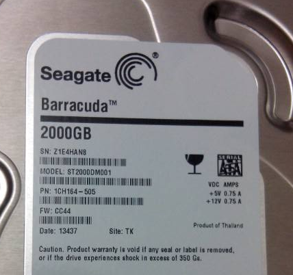 硬盤型號:ST2000DM001-1ER164 SN:W4Z2WAJL FW:CC26 電路板號:100724095
